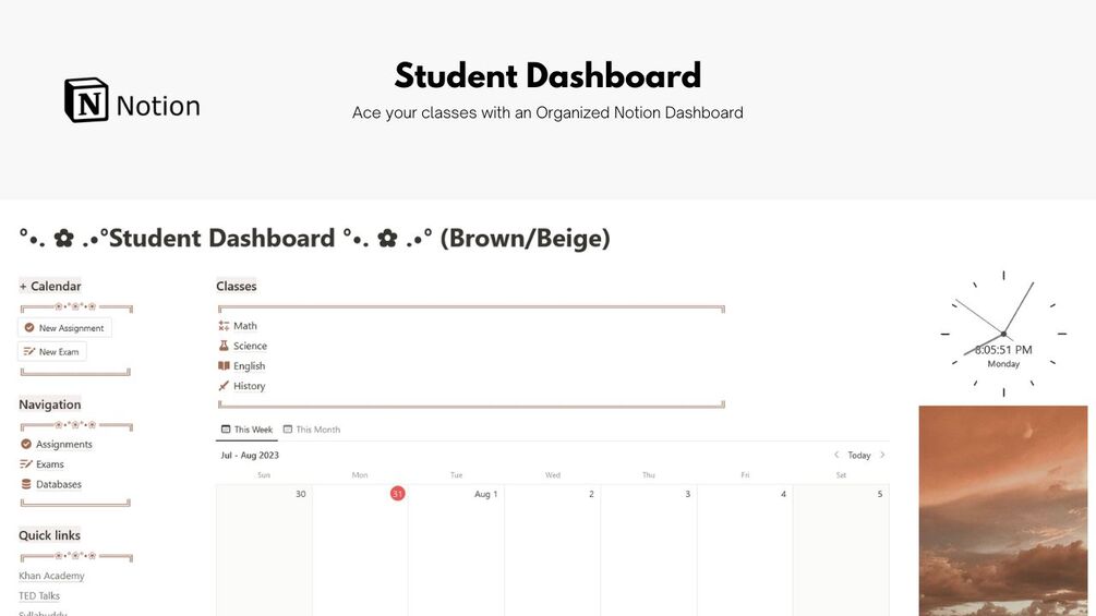 The Brown version of this template has the same features of the basic student dashboard but is decorated for the girlies that love the brown/beige aesthetic.